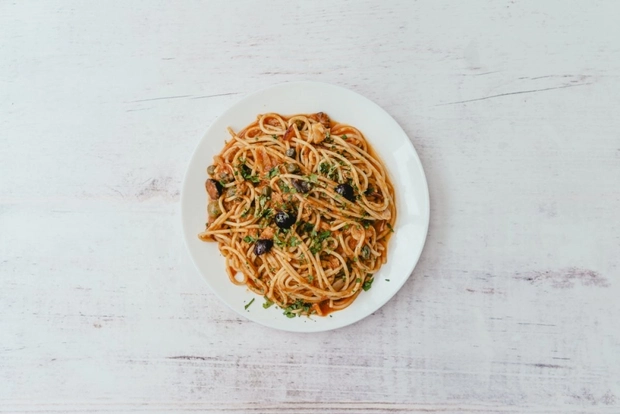pomodoro, tuňák, cibule, kapary, olivy