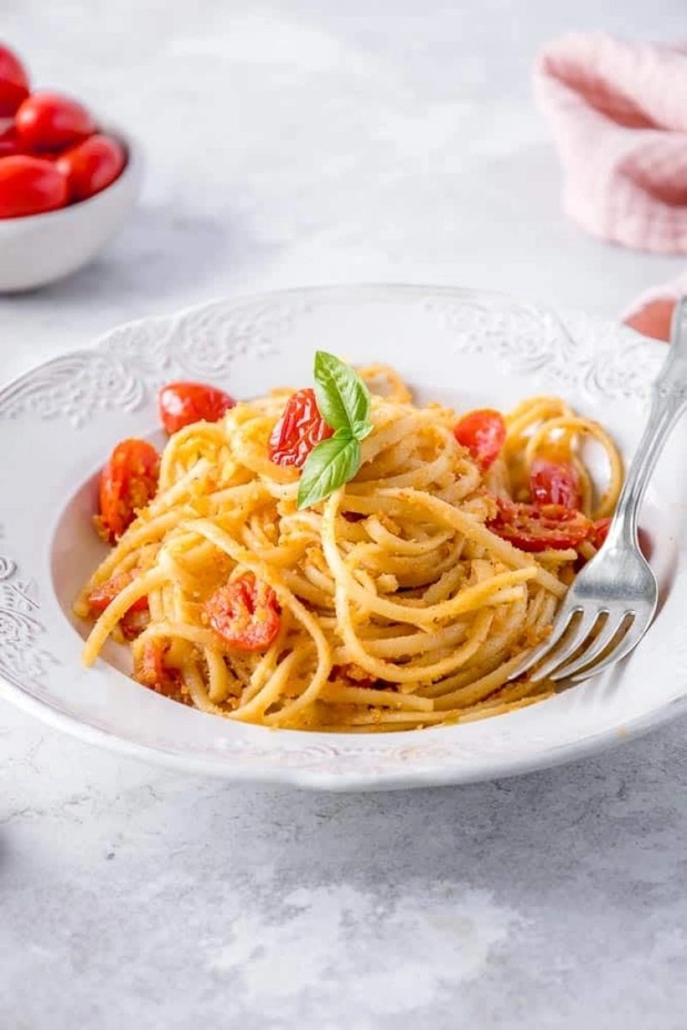 cibule, česnek, cherry rajčata, petržel, parmezán