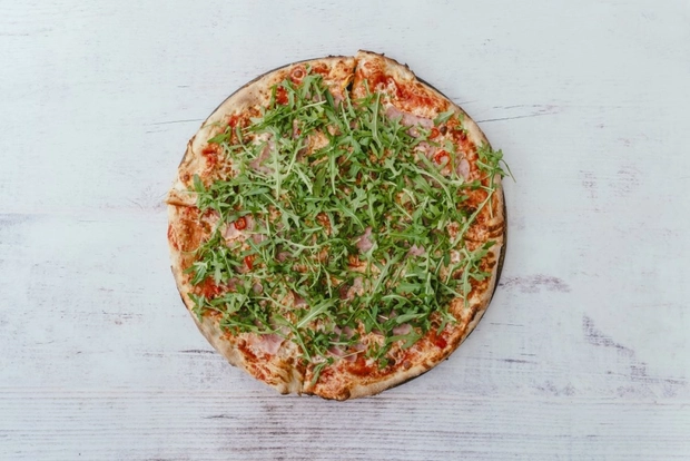 pomodoro, mozzarella, dušená šunka, papričky habanero, rucola