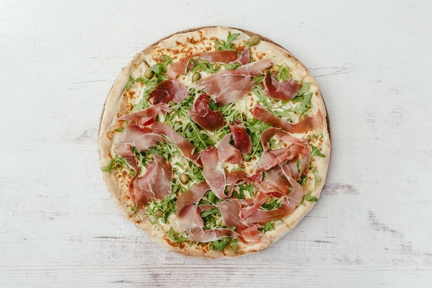 pomodoro, mozzarella, dušená šunka, papričky habanero, rucola