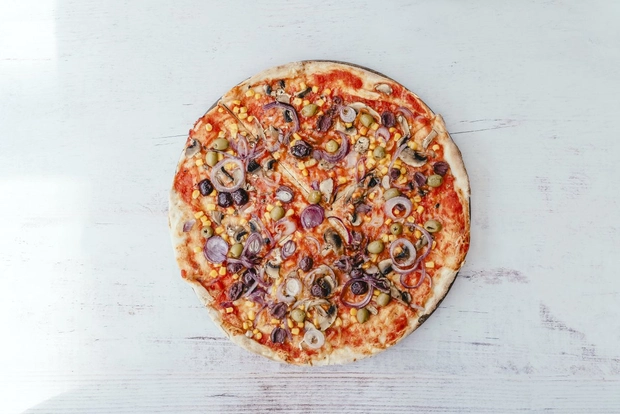 mozzarella, smetana, dušená šunka, žampiony, kukuřice