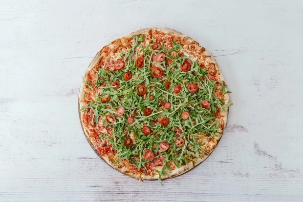 pomodoro, mozzarella, salám Spianata, rucola, cherry rajčata