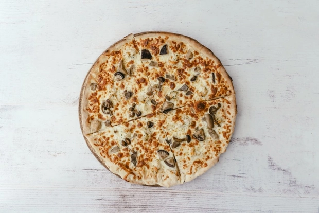 mozzarella, smetana, dušená šunka, žampiony, kukuřice